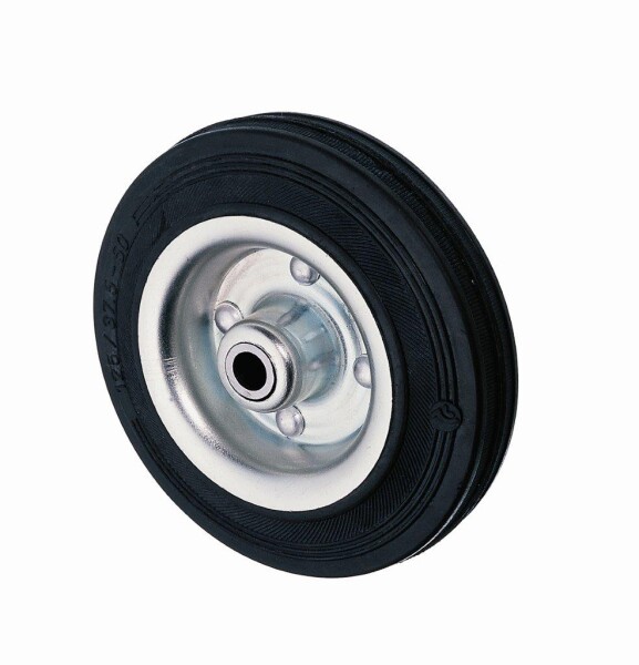 160 mm Vollgummi-Rad mit Rollenlager und Fadenschutz, schwarz, Tragkraft: 140 kg