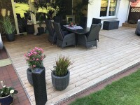 26 x 140 mm Thermisch modifizierte Kiefer, eins. Gebüstet / Rückseite glatt geh. Mit Clip-Nut, ROG-Clip (RC-01 & T3601), Längen:300 bis 540 (alle 30 cm) je nach Verfügbarkeit (Eingabe bei Bestellung / Menge = Lfm.)