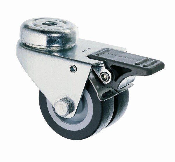 50 mm Doppelbremsrolle mit Rückenloch (10,2 mm), Gleitlager, Tragkraft: 60 kg