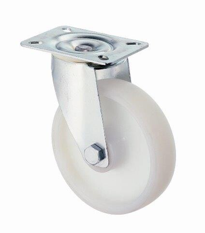 80 mm Polipropylen-Lenkrolle mit Gleitlager, weiß, Tragkraft: 120 kg