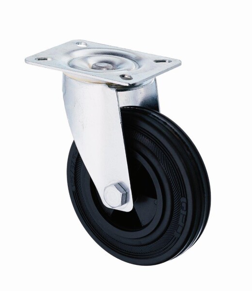 80 mm Vollgummi-Lenkrolle auf Kunststofffelge mit Rollenlager, schwarz, Tragkraft: 50 kg